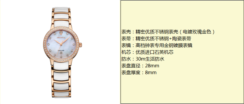 尼诺里拉 白色陶瓷女表